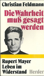 Feldmann, Christian. Die Wahrheit muss gesagt werden. Rupert Mayer – Leben im Widerstand. 4. Auflage. Freiburg, Basel, Wien: Herder 1987. 8°. 117 Seiten. OBroschur. Ein sauberes Exemplar!