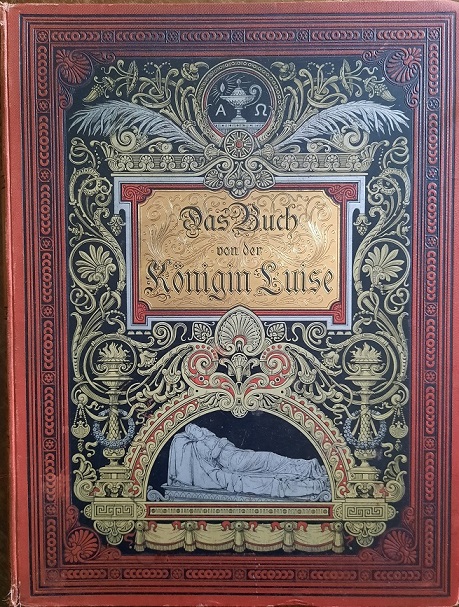 Horn, Georg: Das Buch von der Königin Luise. Mit Portraits und Illustrationen nach gleichzeitigen Originalen und mit sechs Bildern von W[ilhelm] Amberg. Woldemar Friedrich, G[eorg] Kannengießer, Franz Skarbina, O[skar] Wisnieski. 2. unveränderte Auflage. Berlin: Grote 1883. 2° (37x28cm). 204 Seiten, Illustrationen, [8] montierte Tafeln, [6] Blätter Faksimeles. Ganzflächig gepräter Leinenband, Ganzgoldschnitt. Die Bezüge der Rückengelenke etwas brüchig und einseitig stellenweise auf insgesamt etwa 6 cm angeplatzt. Das Vortitelblatt fehlt. Frakturschrift. Insgesamt ein festes und dekoratives Exemplar! Ein hochwertig ausgestatteter historistischer Prachtband im Stil der Zeit!