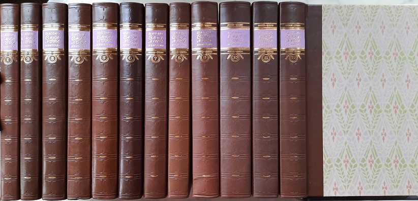 Casanova, Giacomo Girolamo: [Halbleder!] Geschichte meines Lebens. Herausgegeben und kommentiert von Günter Albrecht in Zusammenarbeit mit Barbara Albrecht. Casanovas Memoiren. Vollständige Übersetzung in zwölf Bänden von Heinrich Conrad nach der Ausgabe München und Leipzig 1907/1909, 12 Bände. Revidiert und ergänzt nach Jacques Casanova de Seingalt Venitien, Histoire de ma vie, édition intégrale. Band 1-12. Leipzig, Weimar: Kiepenheuer 1983. 8°. OHalblederbände mit Schutzumschlägen. Die Schutzumschläge teilweise etwas gebräunt. Sehr saubere Exemplare! Eine dekorative Reihe der Halblederausgabe.