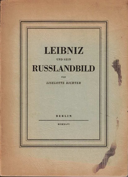 Richter, Liselotte: Leibniz und sein Russlandbild. [im Auftrag der Akademie der Wissenschaften zu Berlin zum 300. Geburtstag ihres Gründers Gottfried Wilhelm Leibniz im Sommer 1946 gedruckt]. Berlin: Akademie-Verlag 1946. 4° (28,5x20,5cm). 1 mintiertes Porträt, 162 Seiten, 6 nn. Tafeln, 1 gefaltete Tafel. OBroschur. Der Umschlag gebräunt und etwas fleckig, innen ein sauberes Exemplar!
